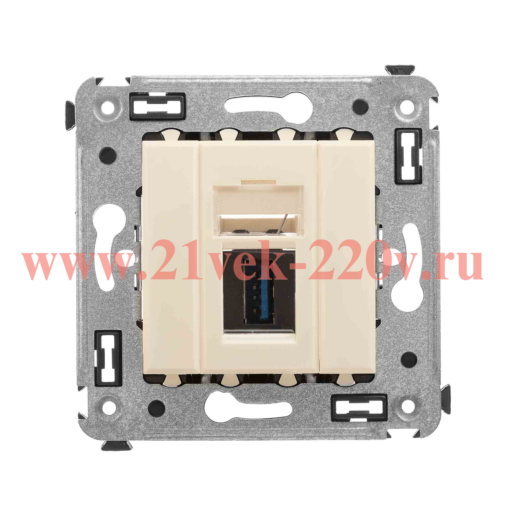 Информационный разъем USB 3.0 ДКС Аванти цвет ванильная дымка, для установки в монтажную коробку.