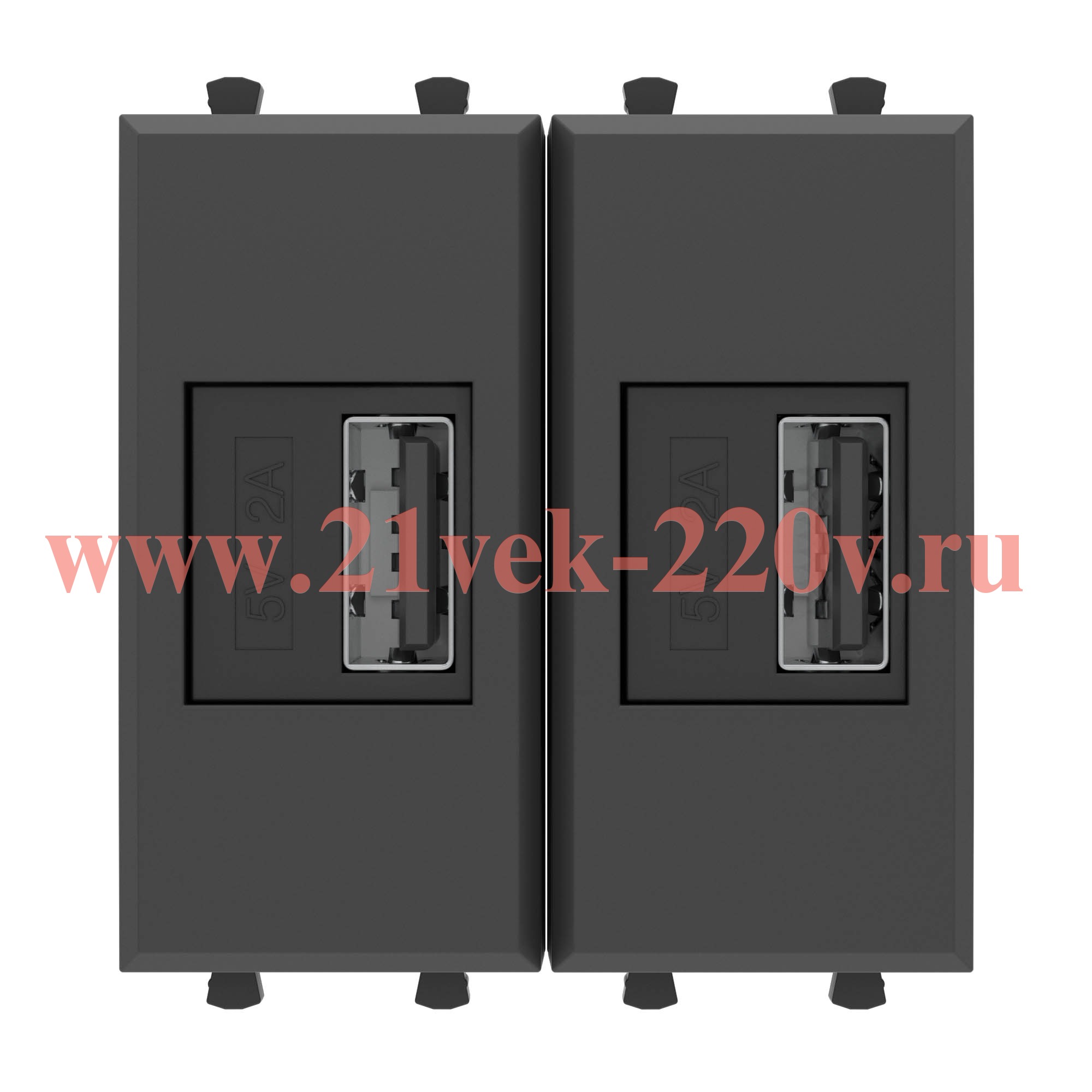 DKC USB зарядное устройство модульное, "Avanti", "Черный матовый", 2 модуля