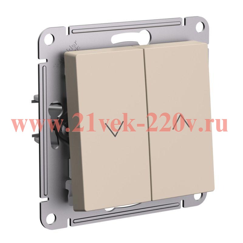 Встраиваемый 2-клавишный кнопочный выключатель с пиктограммой для управления жалюзи, песочного цвета ATN001219