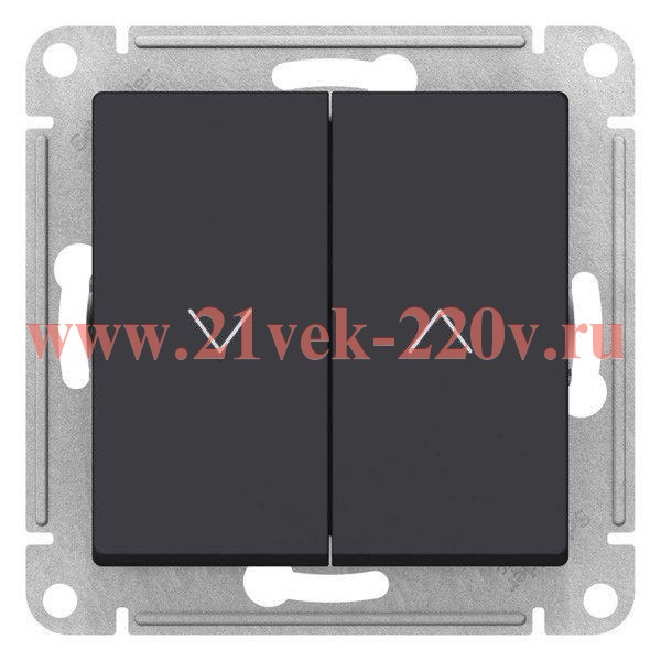 Встраиваемый двухклавишный кнопочный выключатель с пиктограммой для управления жалюзи, цвета карбон ATN001019