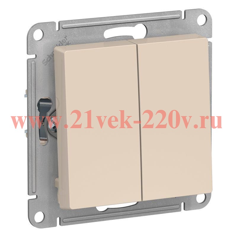 Встраиваемый электрический 2-клавишный проходной выключатель света, Атлас Дизайн, бежевого цвета ATN000265