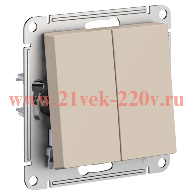 Встраиваемый электрический 2-клавишный проходной выключатель песочного цвета, АтласДизайн ATN001265