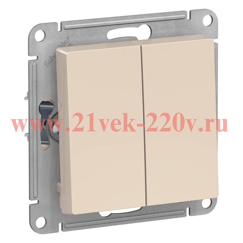 Электрический 2-клавишный встраиваемый выключатель света бежевого цвета, Атлас Дизайн ATN000251