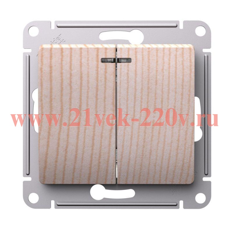 2-клавишный выключатель с подсветкой скрытой установки, цвет - сосна, SE Glossa