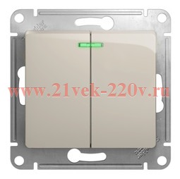 Двухклавишный выключатель с подсветкой 10A механизм SE Glossa, молочный