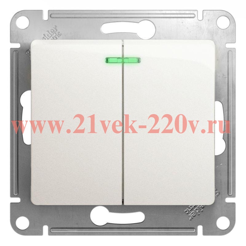 2-клавишный выключатель с подсветкой перламутровый Schneider Electric Glossa