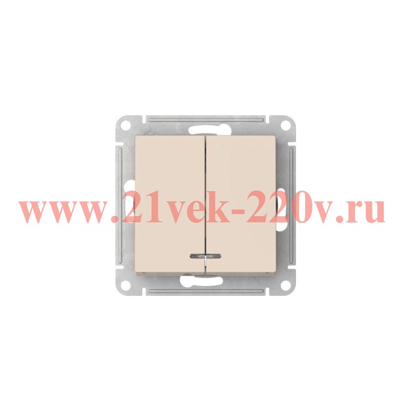 Встраиваемый 2-клавишный выключатель с индикацией АтласДизайн с пружинными клеммами, бежевого цвета ATN000253S