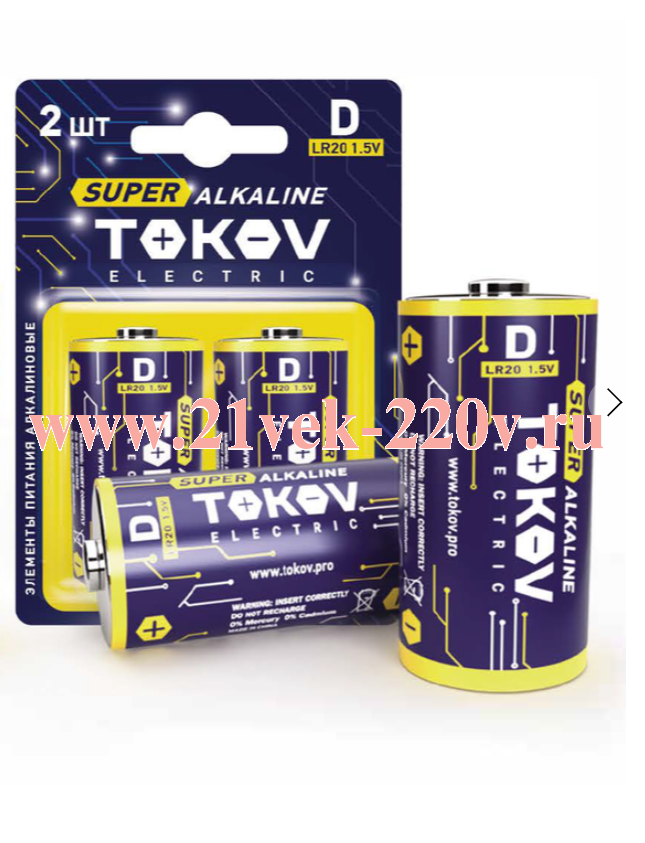 Элемент питания алкалиновый D/LR20 (блистер 2шт) TOKOV ELECTRIC