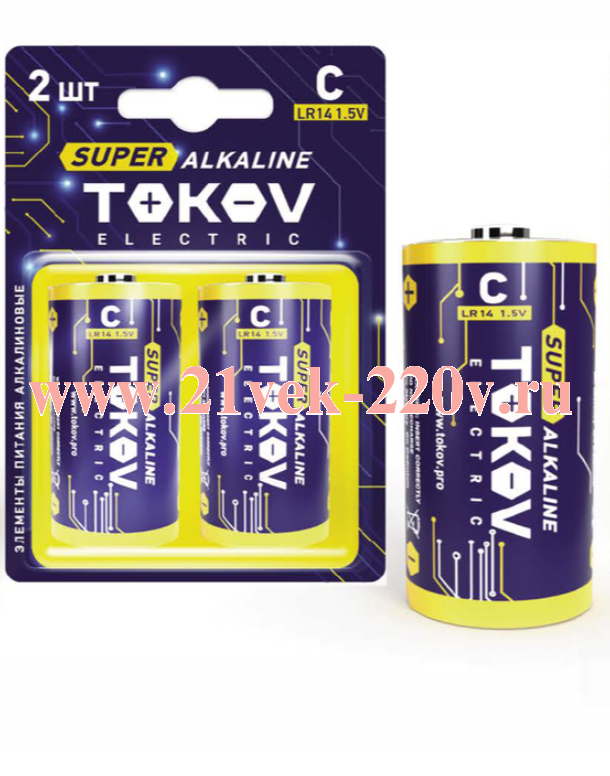 Элемент питания алкалиновый С/LR14 (блистер 2шт) TOKOV ELECTRIC