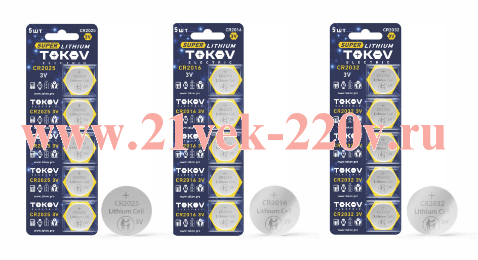 Модельный ряд дисковых источников питания торговой марки TOKOV представлен самыми популярнымитипоразмерами: CR2032, CR2016, CR2025. Батарейки серии Ultra Lithium изготовлены из высокочистоголития, благодаря чему поддерживают высокую мощность при минимальном размере. Отличаютсяустойчивостью к перепадам температуры окружающей среды, низким сопротивлением и стабильнымразрядом, что гарантирует длительный срок службы. Применяются для питания портативных электронныхустройств, таких как: часы, калькуляторы, весы, брелки сигнализации, пульты, датчики, медицинскиеустройства.