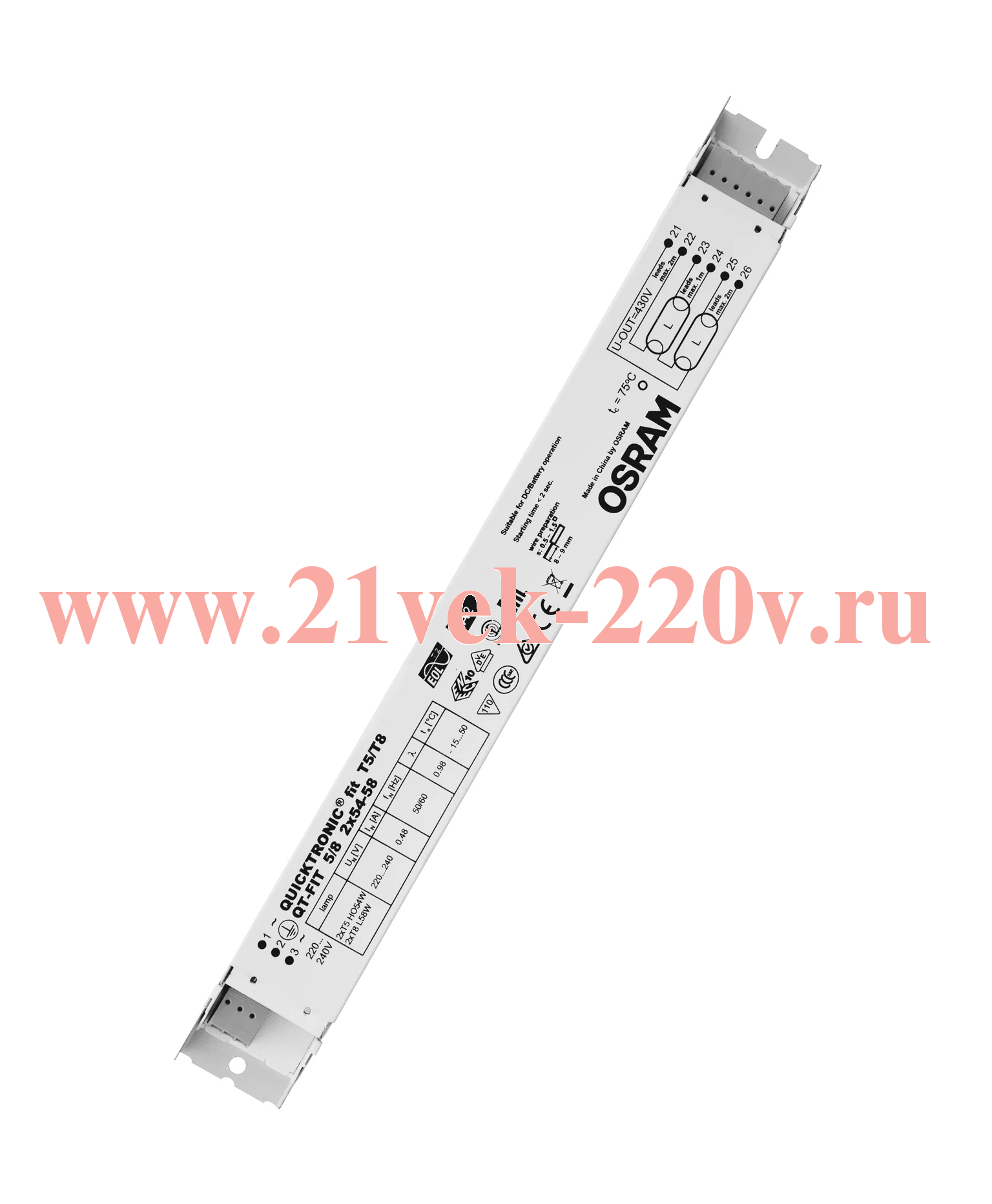 Электронный пускорегулирующий аппарат (ЭПРА) OSRAM QT-FIT 5/8 2X54-58/230-240 (L 51 HO 54 L 58 ) 280x30x21mm.