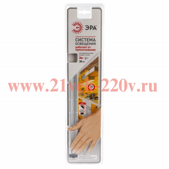 Светодиодные модули ЭРА позволяют обеспечить оптимальное количество света для освещения рабочих поверхностей кухни, письменных столов или других предметов интерьера при минимальном потреблении электроэнергии. Встроенная сенсорная система позволяет управлять освещением без использования стандартных выключателей и обеспечивает повышенный комфорт в эксплуатации. Светодиодный модуль с управлением от датчика прикосновения. Мощность 3Вт. Срок службы 30000 часов. Напряжение питания 12В DC. Цветовая температура 4000K. Комплектация: светильник, источник питания, крепёжные клипсы, двусторонний скотч.