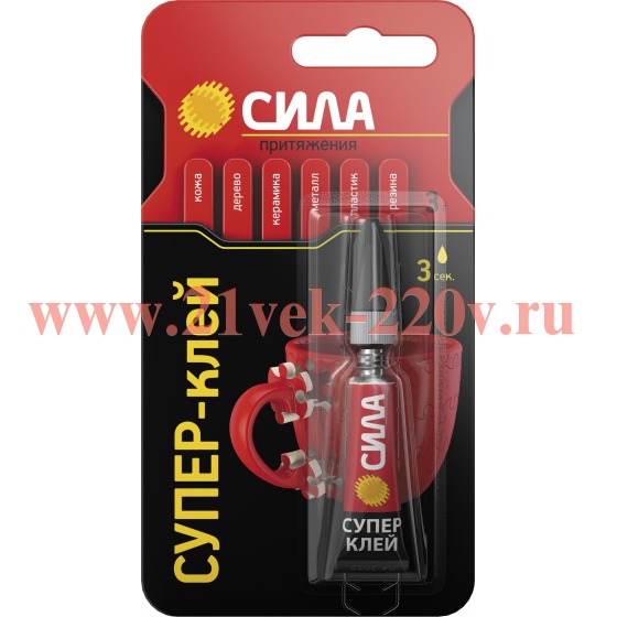 Супер-клей СИЛА, идеально подходит для быстрого и эффективного ремонта различных предметов мебели, интерьера и т.д. Накрепко схватывает дерево, резину, керамику, фарфор и пластик, при этом супер клеи экономично расходуются и высыхают за несколько секунд.