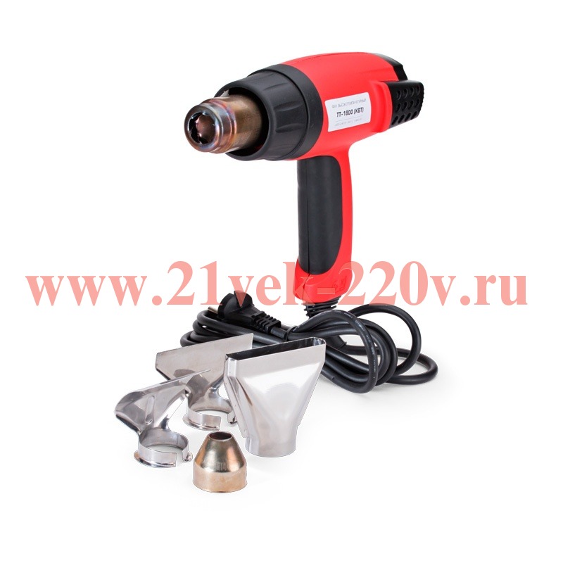 Фен технический высокотемпературный ТТ-1800 серия МАСТЕР с комплектом из 4 насадок (редукционная, рефлекторная, широкая щелевая, стеклозащитная) SKU, ТТ-1800, КВТ. Монтаж термоусаживаемых трубок, удаление старых малярных покрытий, высушивание малярно-штукатурных, лаковых покрытий, ремонт пластиковых деталей, разморозка труб.
