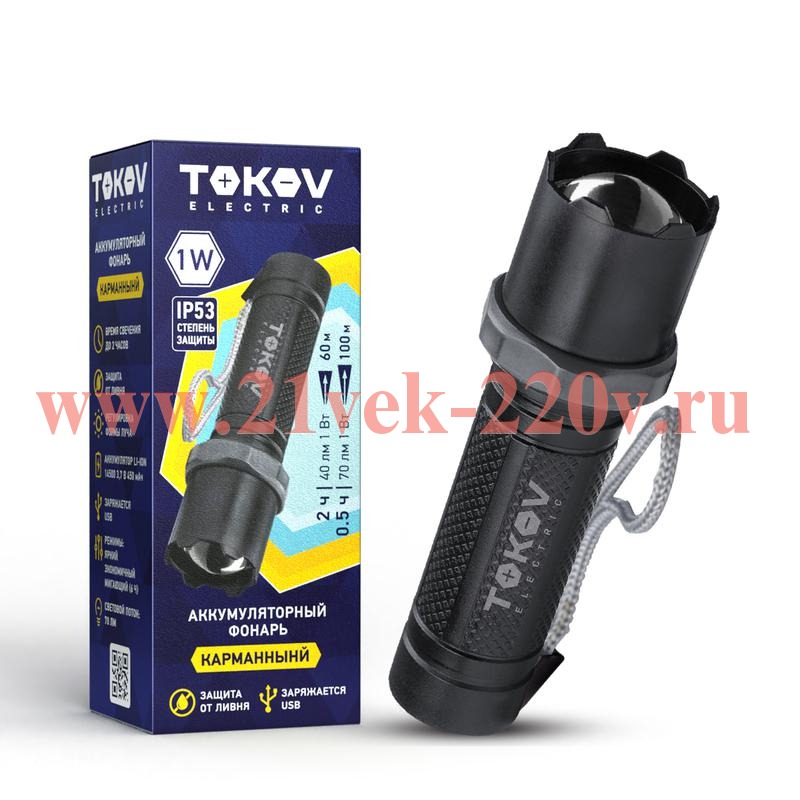 Фонарь аккумуляторный ручной 1200мА.ч анодированный алюм. TOKOV ELECTRIC TKE-RF-A-02