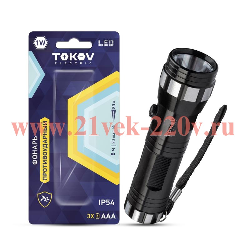 Фонарь ручной на батарейках 3xAAA анодированный алюм. TOKOV ELECTRIC TKE-RF-B-01