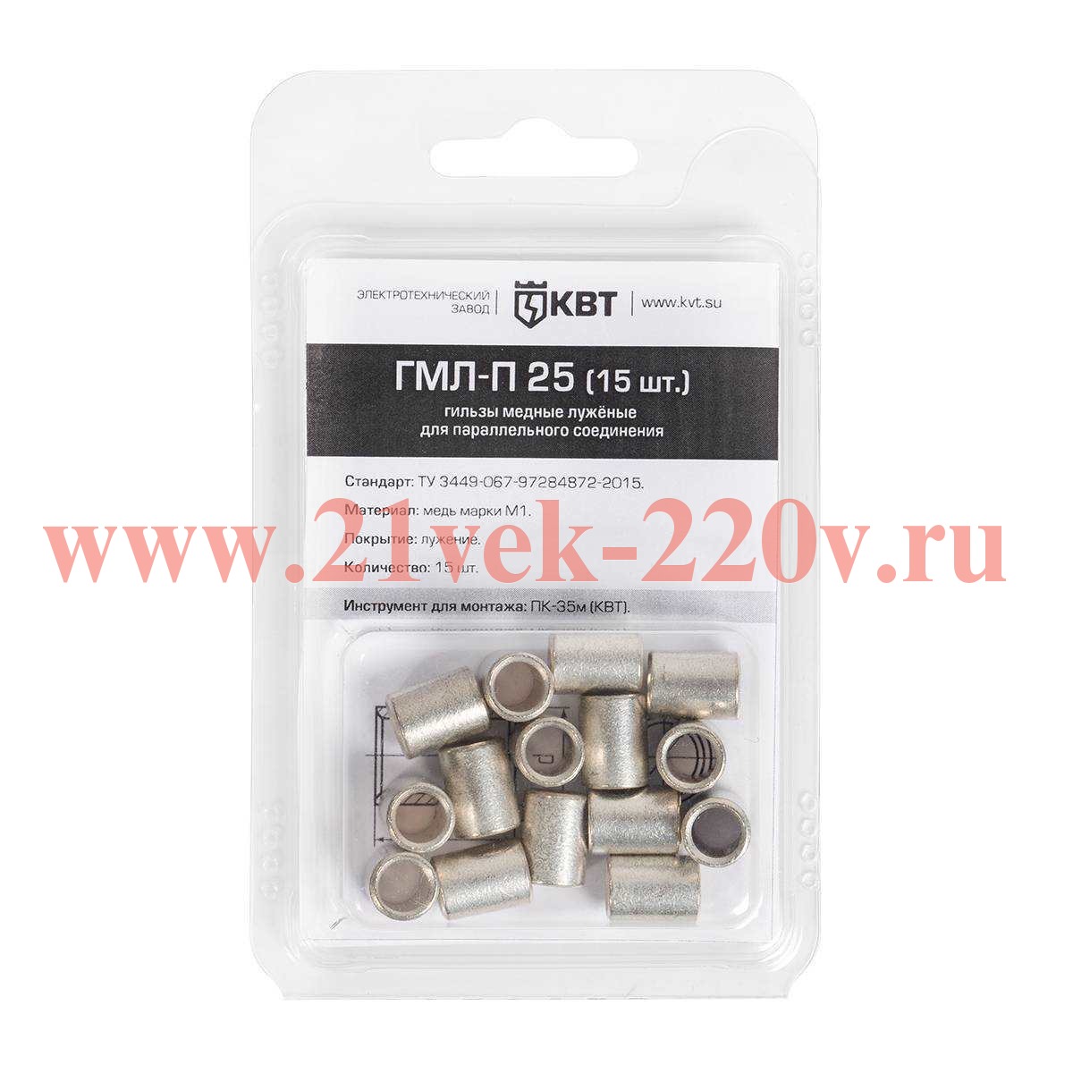 Гильза кабельная ГМЛ-П 25 (15шт) медная лужёная для параллельного соединения в мини-упаковке.