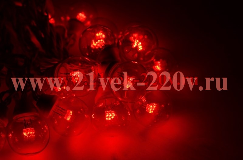 Данная гирлянда имеет длину 10 м, на которой равномерно расположено 30 лампочек красного цвета свечения.