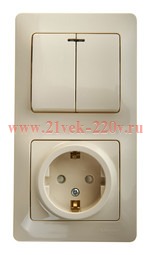 GLOSSA БЛОК: РОЗЕТКА с заземлением со шторками и 2-кл. ВЫКЛЮЧАТЕЛЬ с подсв,БЕЖЕВ