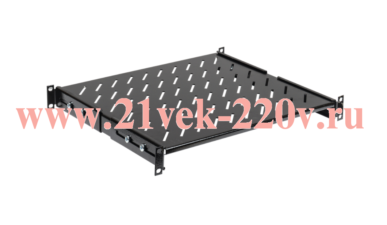 Стационарные полки рассчитаны на тяжелое оборудование с постоянным статичным размещением, крепятся как на фронтальные, так и на задние профили, имеют перфорированную поверхность для обеспечения лучшего охлаждения и отведения теплых воздушных потоков. Ушки, с помощью которых полки крепятся к монтажным профилям, могут регулироваться спереди и сзади в пределах 50 мм, что позволяет увеличить глубину полки на 100 мм и упрощает ее установку внутри шкафа.