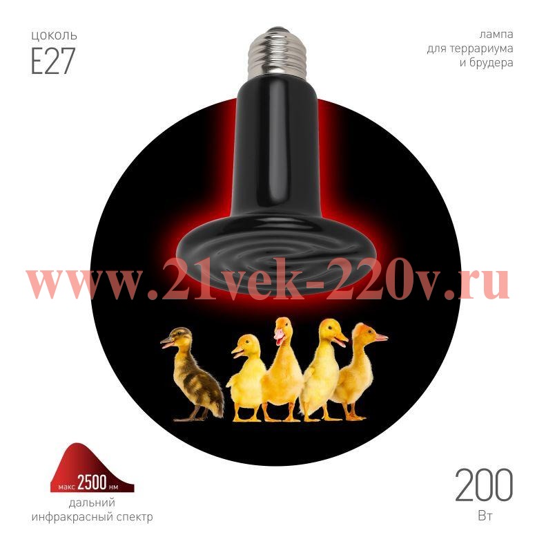 Инфракрасный керамический нагреватель FITO-200W-НQ от ЭРА с цоколем Е27 серии CeramiHeat - прекрасное решение для курятника или террариума. Лампа для птиц обладает отличным тепловым эффектом: температура в вертикальном положении может достигать 400 градусов. Керамическая лампочка не нарушает режим сна и бодрствования животных, так как не излучает свет. Мощность 200 Вт, имеет возможность диммирования. Эксплуатация лампы возможна только с керамическим патроном. Минимальное расстояние до пластиковых частей клетки - 15 см. Площадь обогрева курятника до 1 м2. Положение лампы от дна брудера - не менее 40 см. Лампа для цыплят также может использоваться во влажной среде. При работе лампы необходимо обезопасить от прикосновения к ней животных, для этого рекомендуется использовать светильники с сетчатыми рассеивателями и термостойкими проводами. Замена лампочки возможна только после её остывания. Лампа для рептилий и цыплят от компании ЭРА станет незаменимым атрибутом для Ваших животных!