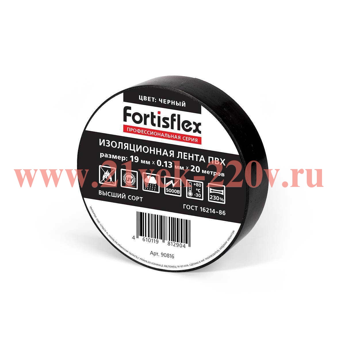 Изолента ПВХ 19х0.13х20 черн. Fortisflex