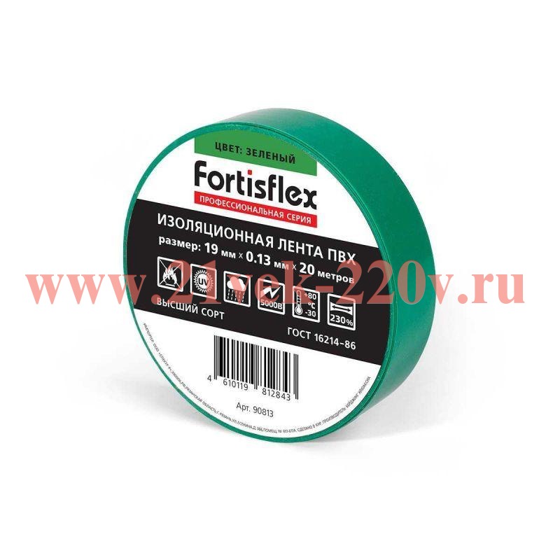 Изолента ПВХ 19х0.13х20 зел. Fortisflex