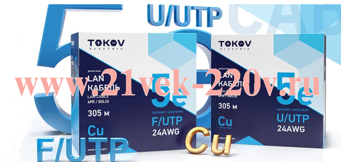 Кабель торговой марки TOKOV ELECTRIC витая пара категории 5Е симметричной парной скрутки с числом пар менее 4-х предназначен для передачи сигналов с частотой до 100 МГц. Применяется в структурированных кабельных системах (локальных компьютерных сетях) и системах широкополосного доступа (ШПД) в качестве отдельных кабельных линий. Кабель изготовлен в соответствии с требованиями стандартов: ISO/IEC 11801 Ed. 2.0, EN 50173-1, TIA 568-D.2 и ГОСТ Р 54429. Предназначен для одиночной или групповой стационарной прокладки внутри помещений. Двухпарный кабель категории 5е на основе витой пары предназначен для использования организации телефонной линии связи, подключении систем сигнализации или в системах передачи данных с скоростью до 100 Мбит/с с использованием 2-х пар.Кабель выполнен в исполнении U/UTP и F/UTP и предназначен для прокладки внутри зданий. Диаметр проводников составляет 0,48 мм (24AWG). Внешняя оболочка выполнена из не распространяющего горения ПВХ.