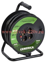 Катушка УК50 с т/з 4 места 2P+PE/50м 3х1,5мм2 GENERICA
