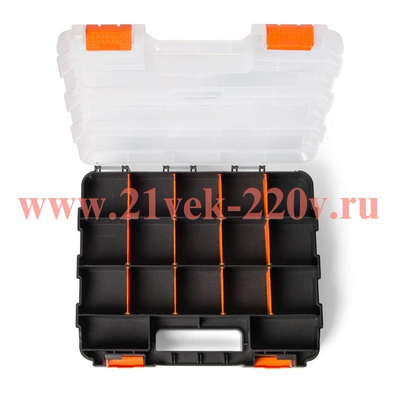 - Пластиковый двухсторонний кейс-органайзер с модульными отделениями для хранения мелких предметов