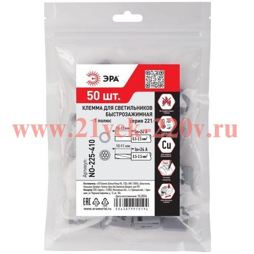 Клемма быстрозажимная 221-101 1п 0.5-2.5кв.мм для светильников NO-225-410 (уп.50шт) Эра
