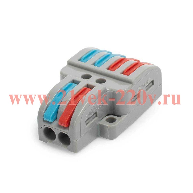 Клемма ответвительная СМК 222-424 SKU, КВТ. Ответвление одножильных/ многожильных медных проводников сечениями от 0.08 до 4 мм2 с 2 подключениями.