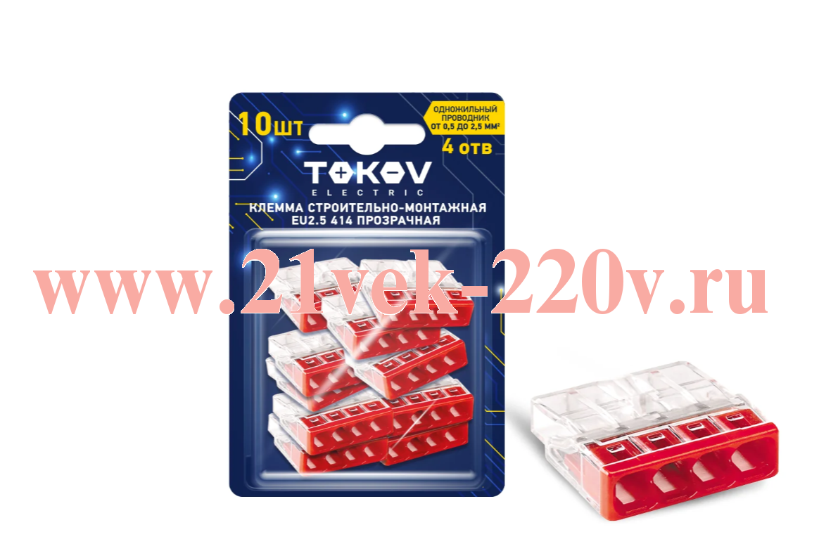 Клемма строительно-монтажная EU2.5 414 прозр. 4 отверстия (блист.10шт) TOKOV ELECTRIC