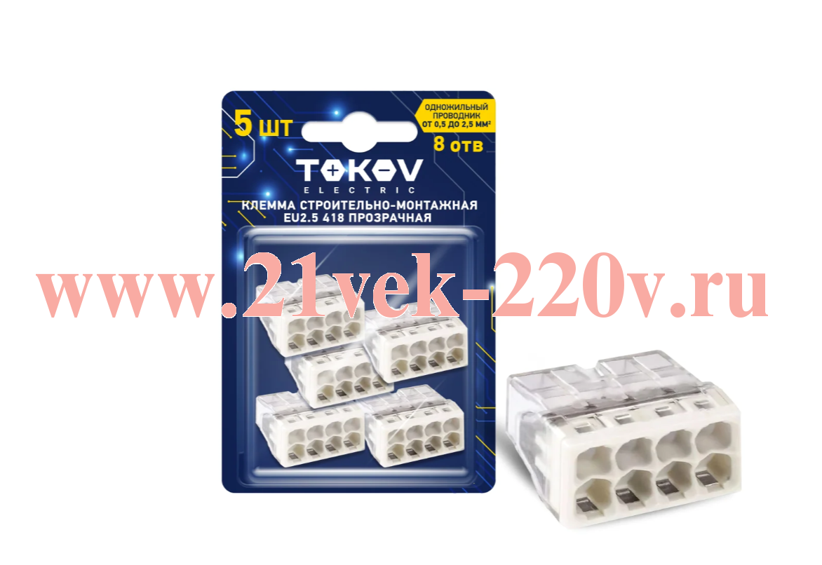 Клемма строительно-монтажная EU2.5 418 прозр. 8 отверстий (блист.5шт) TOKOV ELECTRIC