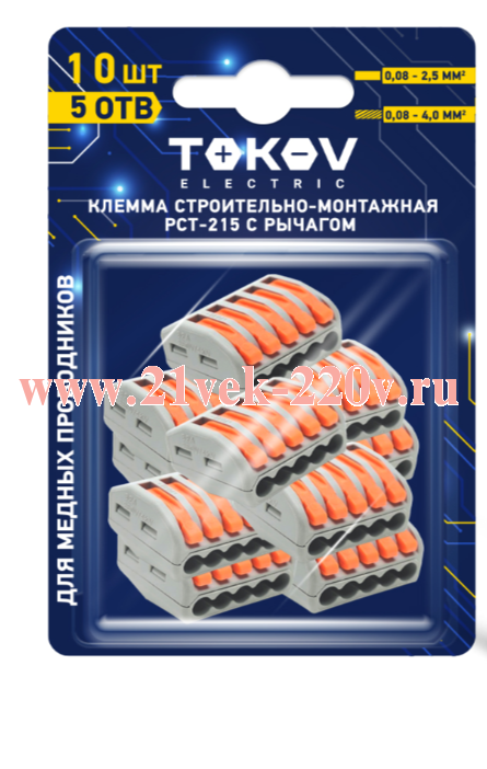 Клемма строительно-монтажная PCT-215 с рычагом 5 отверстий (блист.5шт) TOKOV ELECTRIC