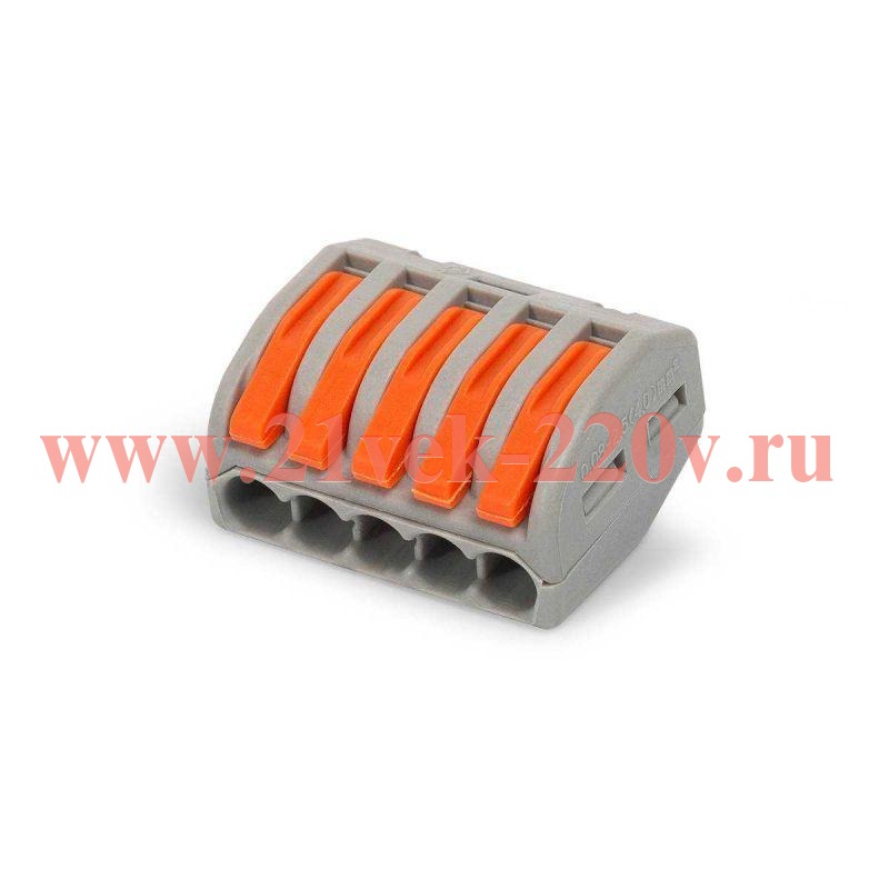 Клемма универсальная СМК 222-415 SKU, КВТ. Подключение одножильных/ многожильных медных проводников сечениями от 0.08 до 4 мм2 с 5 подключениями.