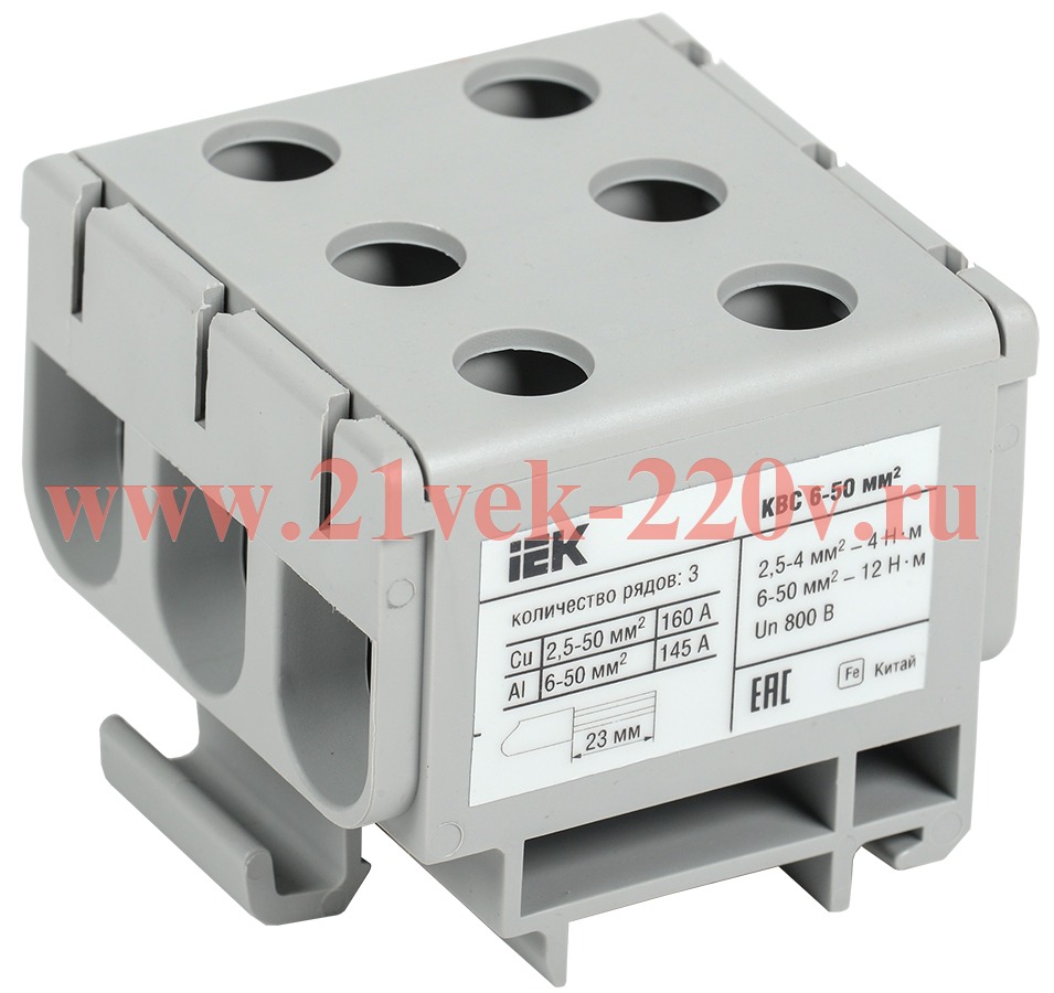 Клемма вводная силовая КВС 6-50 кв.мм. 3-рядная серая IEK