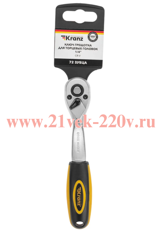 Ключ-трещотка для торцовых головок 1/4 СrV 72 зубца Kranz KR-12-8403