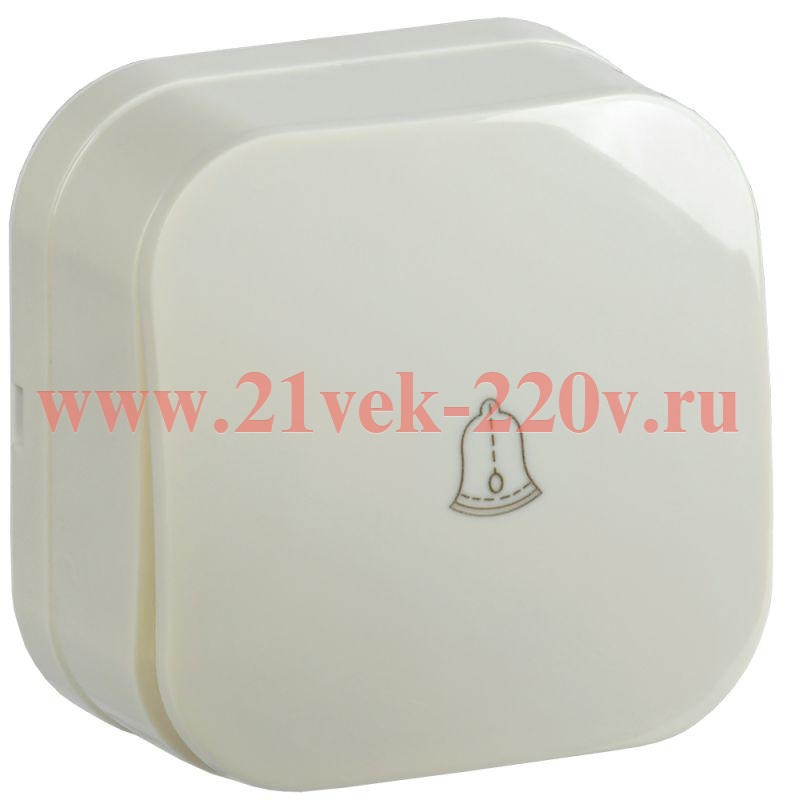 Одинарный кнопочный (качели) выключатель, с пиктограммой звонок, накладного монтажа Глори ИЭК кремового цвета EVH14-K33-10