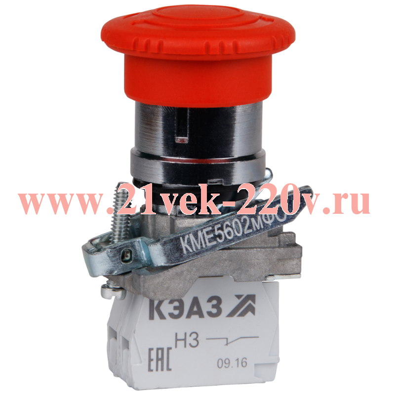 Кнопка грибовидная КМЕ 5602мФС 0НО+2НЗ IP65 с фиксацией красн. КЭАЗ