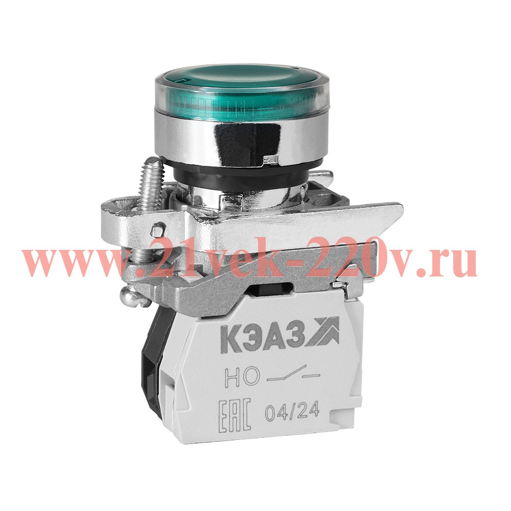 Кнопка КМЕ 4610мЛС 220В 1но+0нз цилиндр индикатор IP65 зел. КЭАЗ