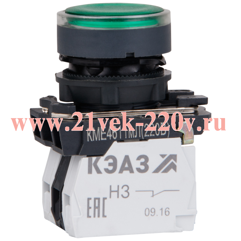 Кнопка КМЕ4511мЛ 24В зел. 1но+1нз цилиндр индикатор IP54 КЭАЗ