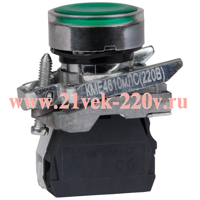 Кнопка КМЕ4611мЛС-24В-зеленый-1но+1нз-цилиндр-индикатор-IP65 КЭАЗ