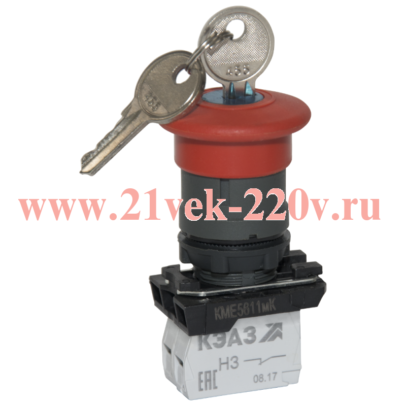 Кнопка КМЕ5511мК красн. 1но+1нз гриб ключ фикс IP54 КЭАЗ