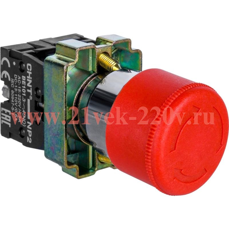 Кнопка управления "Грибок" d30мм (2) с фиксацией NP2-BS445 без подсветки красн. 1НЗ +1НО IP40 CHINT