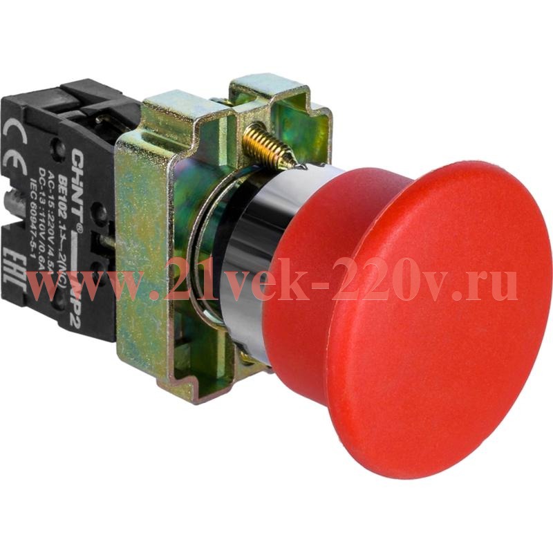 Кнопка управления "Грибок" d40мм (2) с самовозвратом NP2-BC42 без подсветки красн. 1НЗ IP40 CHINT