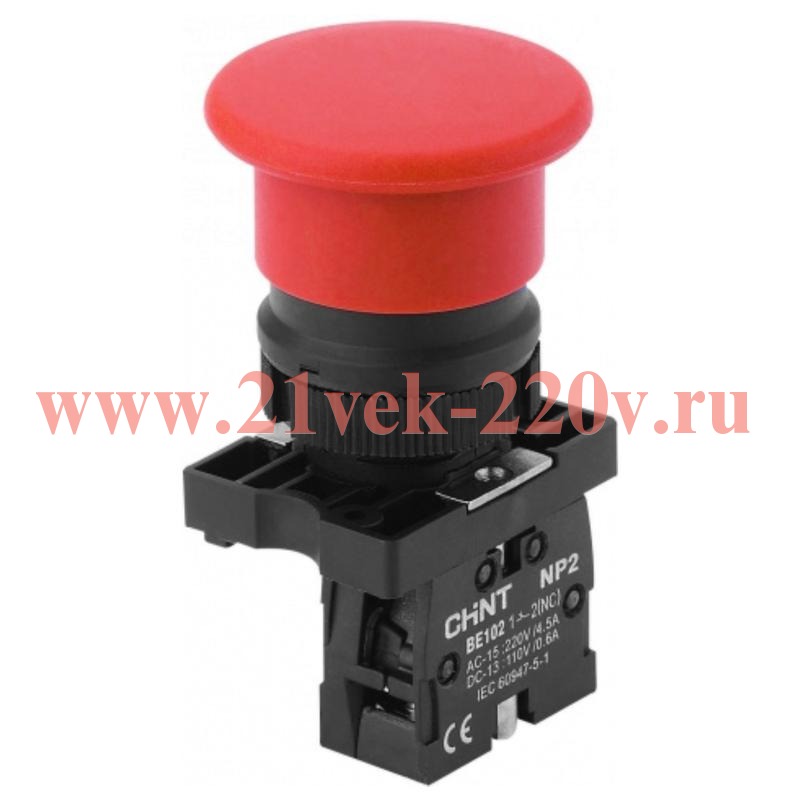 Кнопка управления "Грибок" d40мм (2) с самовозвратом NP2-EC42 без подсветки красн. 1НЗ IP40 CHINT