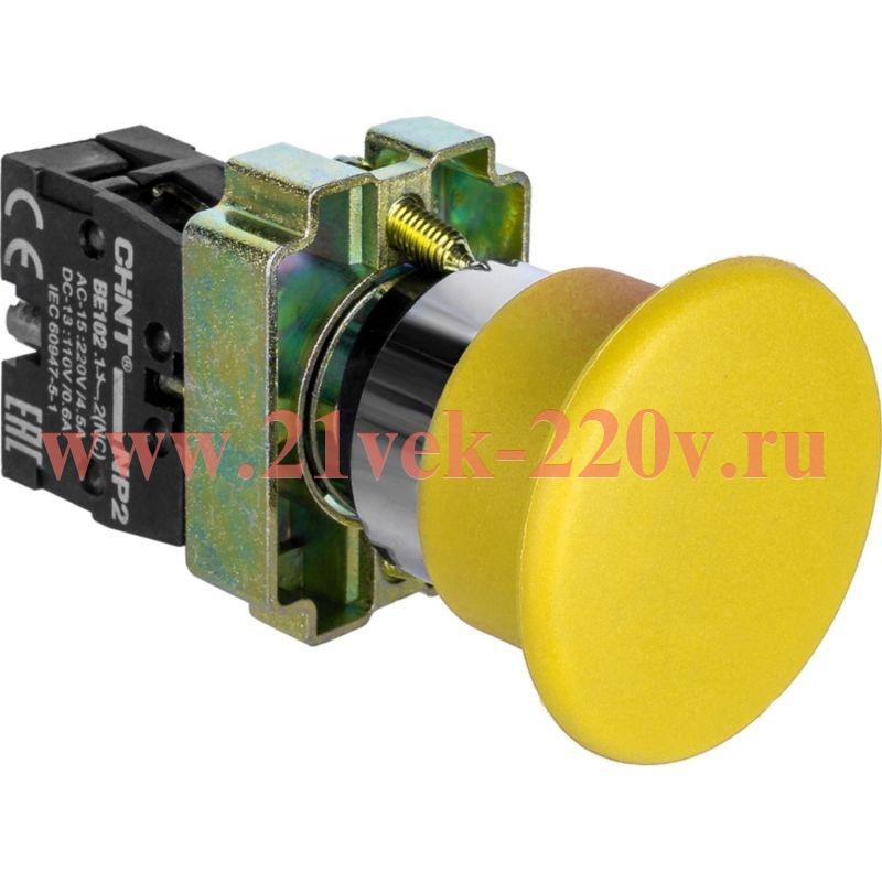Кнопка управления "Грибок" NP2-BC62 d40мм 1НЗ IP40 с самовозвратом без подсветки син. (R) CHINT