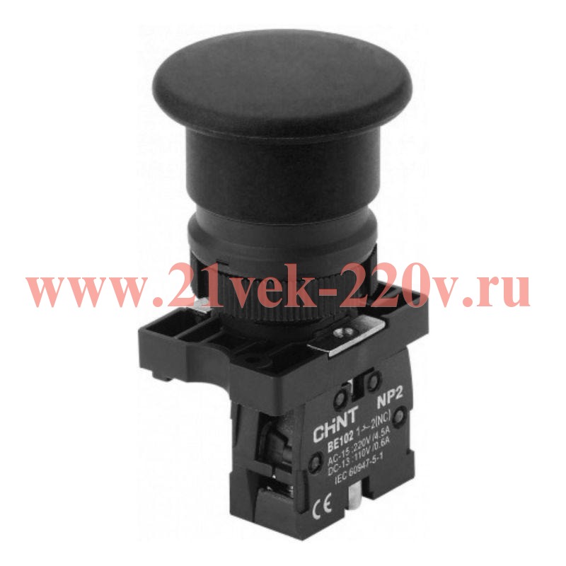 Кнопка управления "Грибок" NP2-EC52 d40мм 1НЗ IP40 с самовозвратом без подсветки син. (R) CHINT