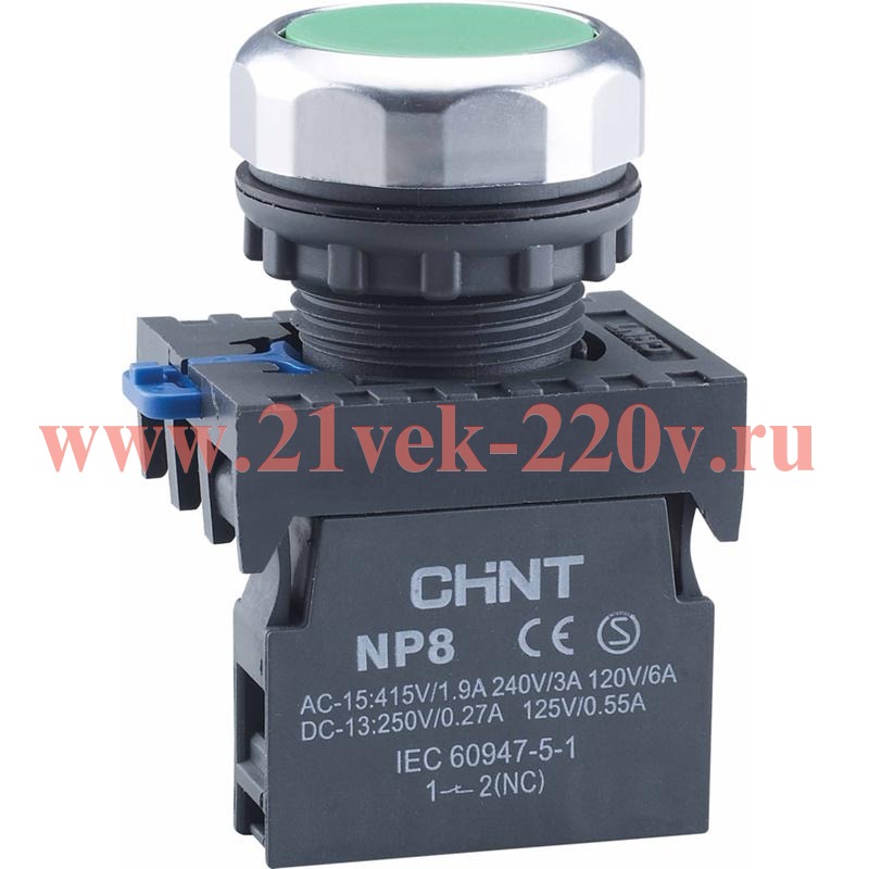 Кнопка управления NP8-10BND/3 1НО зелёная AC 110В-220В(LED) IP65 (R) CHINT